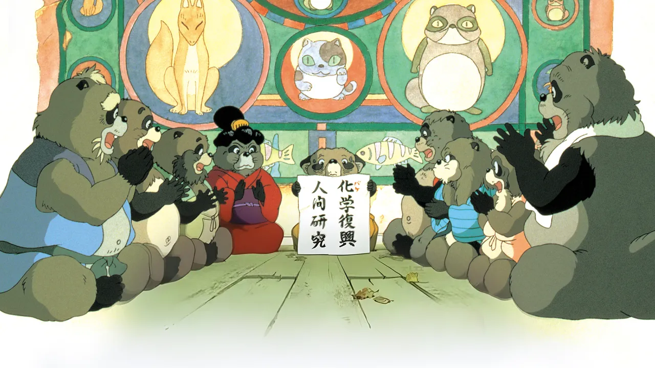 두 무리로 나뉘어 살던 너구리들은 도쿄 개발 계획으로 인해 그들의 숲이 파괴되자 이에 대항하기 위해 나선다. 너구리들은 외부의 원군을 기다리며, 변신술과 게릴라 작전으로 인간들의 개발 계획과 공사를 방해한다.