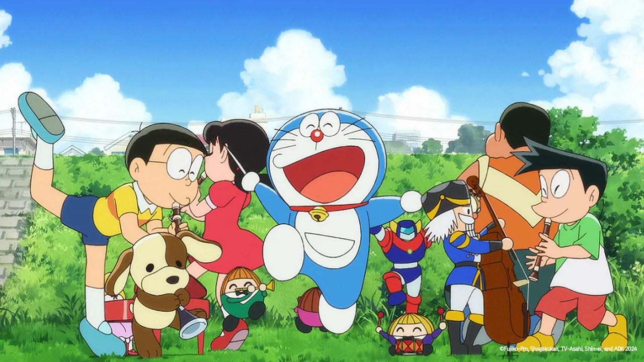 학교 음악회를 위해 리코더 연습을 하던 진구 앞에 어느 날, 음악이 에너지가 되는 행성에서 온 미카가 나타난다. 파레의 전당을 구하고자 음악의 달인을 찾던 미카는 전당으로 도라에몽과 친구들을 초대한다.