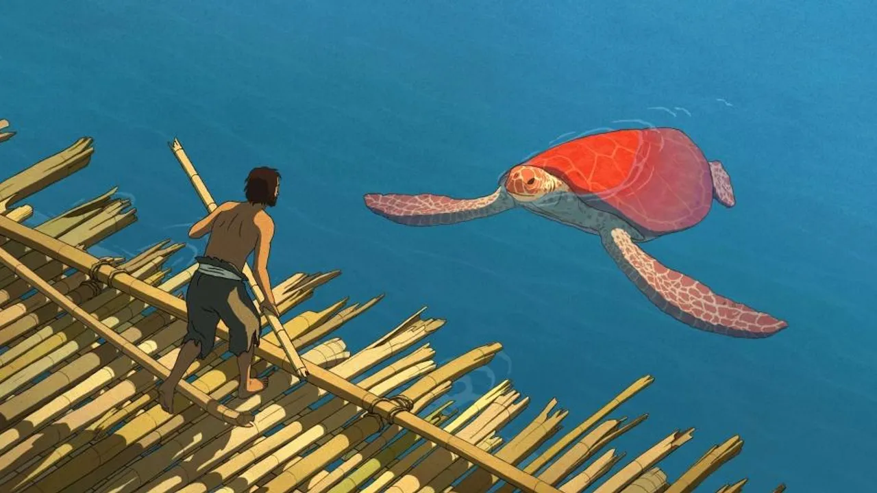 거센 파도에 밀려 배가 난파를 당하고 무인도에 밀려온 주인공이 붉은 거북에서 아리따운 여자로 변한 한 여자를 만나면서 벌어지는 이야기를 그린 애니메이션. 붉은 거북은 거북이와 게, 새들이 사는 열대 섬으로 난파된 남자의 이야기를 통해 인간 삶 속 이정표들을 헤아린다.